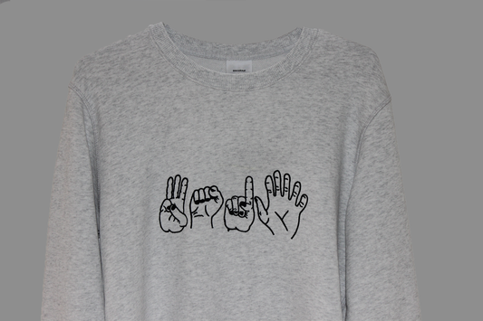 Premium Faded White Embroidered "3016 Hands" Crewneck Jumper