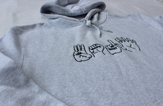 Premium Faded White Embroidered "3016 Hands" Hoodie